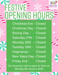 If you are looking for a share withdrawal, you will have until 12pm on Tuesday 24th of December to request – any received after this date/time won’t be processed until our branches re-open on Monday 6th of January 2026 as there will be no staff available to process these.